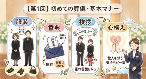 第1回目は、「初めての葬儀・基本マナー~これだけ知っておけば大丈夫~」という