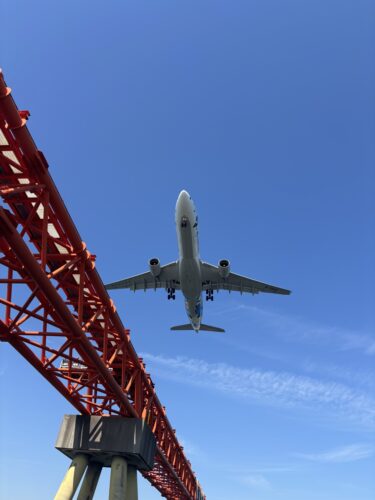 羽田空港が近いため、上空を飛び交う飛行機を間近で見ることができ、その迫力に
